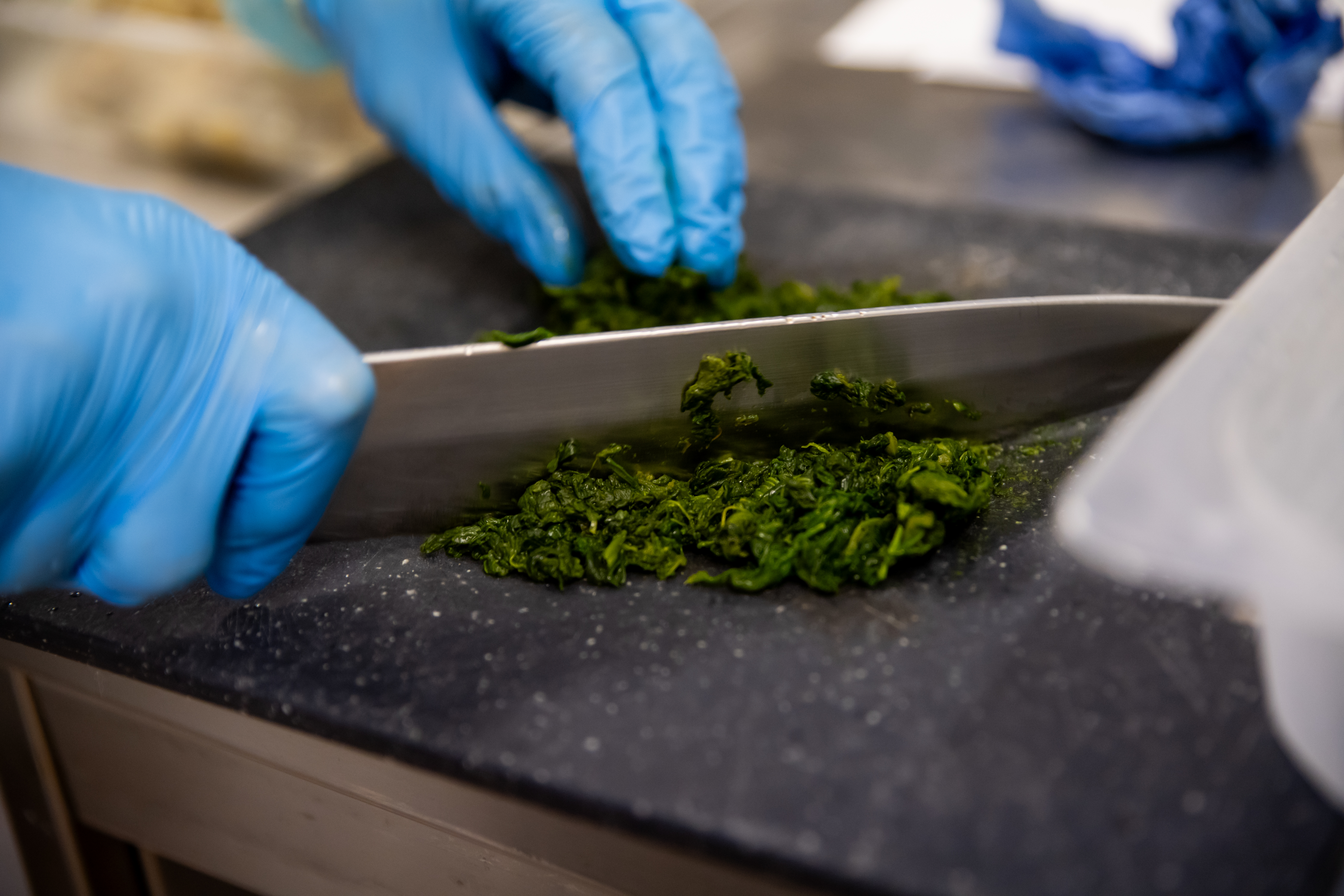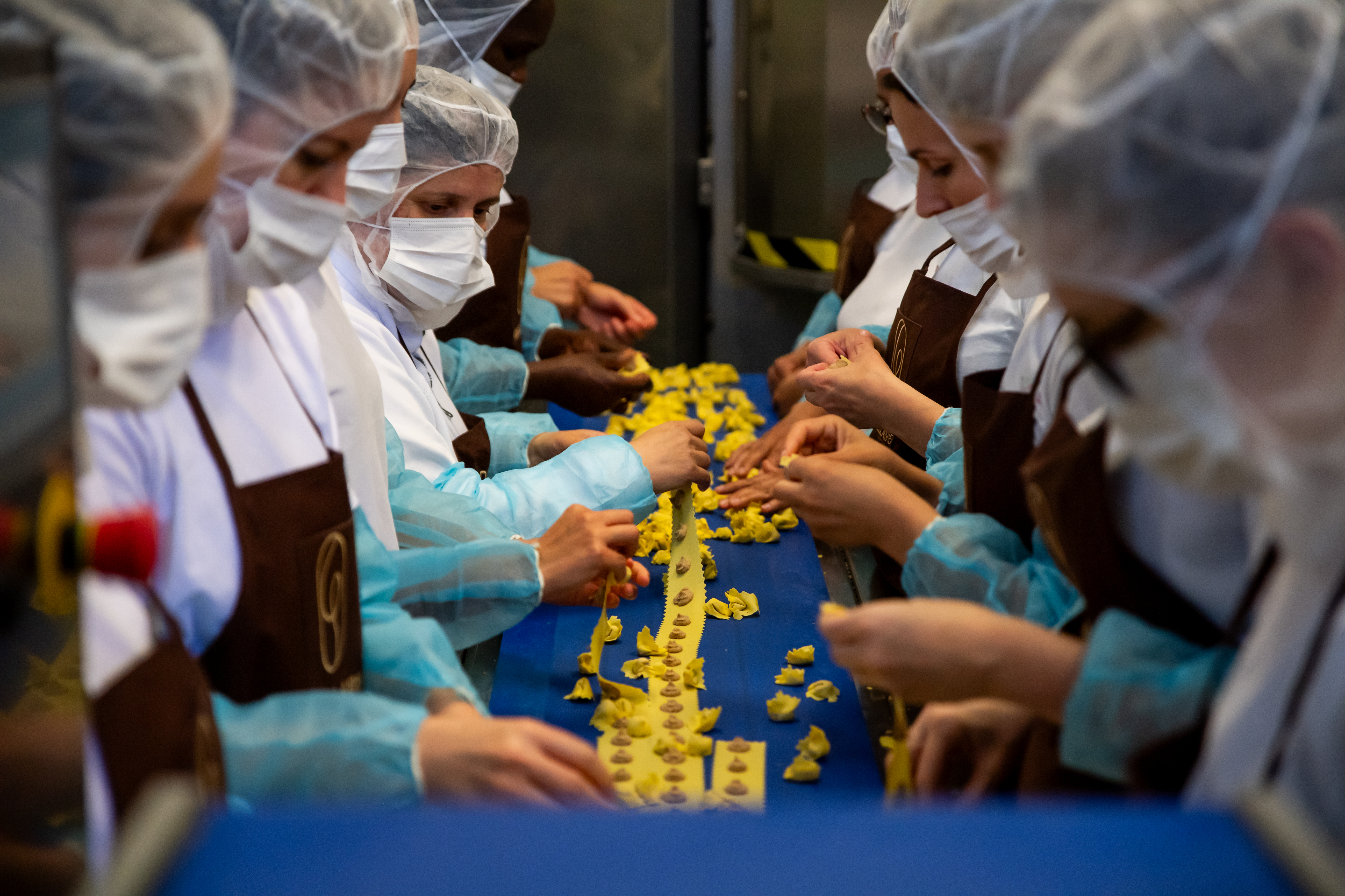 Preparación gastronómica rellena:Pasta fresca al huevo con relleno de Zola y nueces.